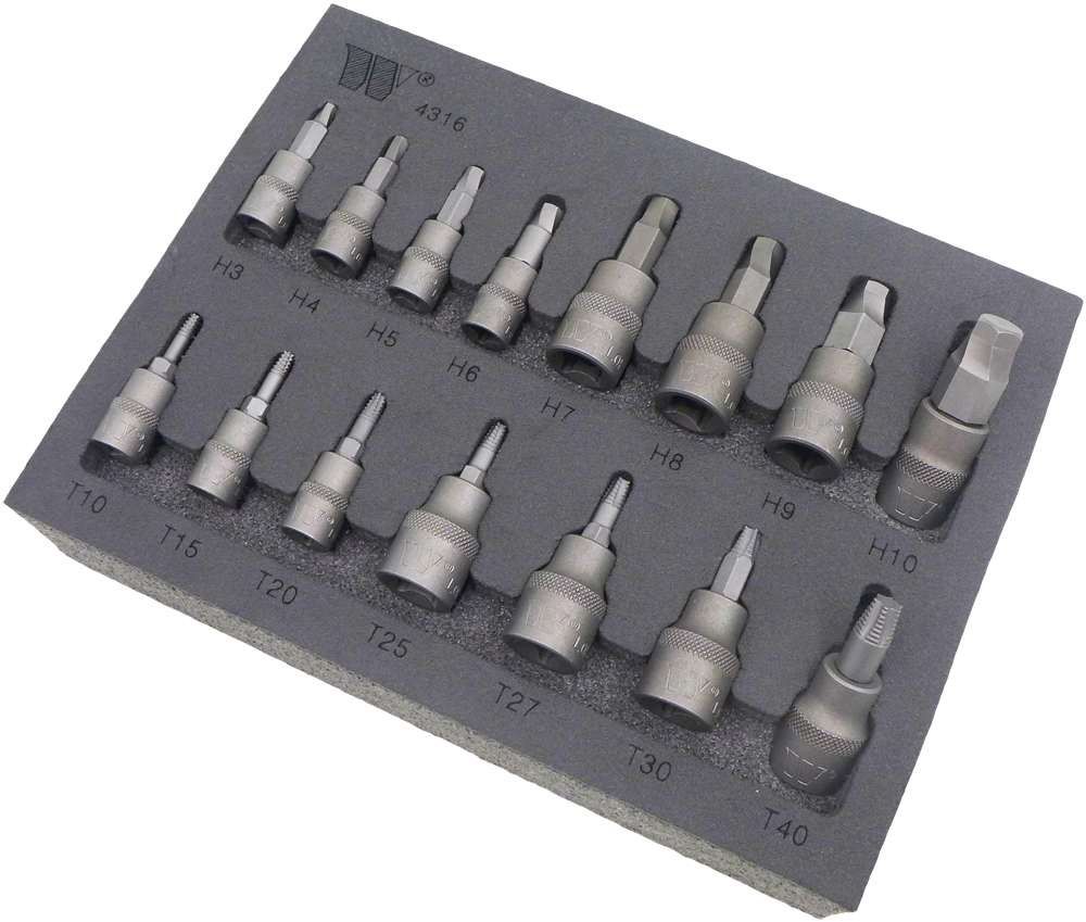 Welzh Werkzeug 4316-WW csavarkiszedő készlet sérült fejű csavarokhoz (torx, imbusz), 15 részes