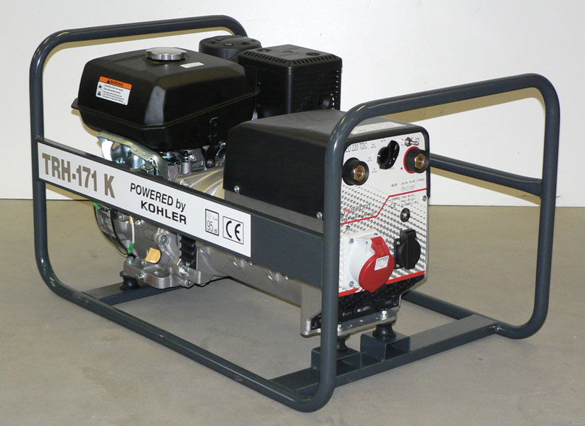 A KOHLER benzinmotorok az USA-ban fejlesztett, megbízható, gazdaságos üzemű és hosszú élettartamú motorok. E motorokkal gyártott hegesztő-áramfejlesztők kiválóak építési munkahelyek áramellátására és munkahelyi hegesztésre. Kis méretük és tömegük ellenére nagy hegesztőáramot tudnak leadni, így közműépítő és karbantartó vállalkozások ideális gépe lehet. A gép alapkeretre szerelt, burkolatlan kivitelű, berántós indítású.